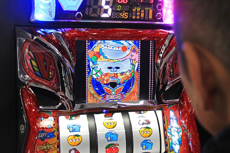 パチンコ1発台の魅力を再現した同機種は、ノスタルジックな音楽や筺体デザイン、リールを採用した。レア小役などで「一発入魂チャンス」。筺体右のドットで玉がクルーンルートに行けばクルーン演出が発生。3穴クルーンの手前の穴に入れば大当たりというシンプルなゲーム性だ。