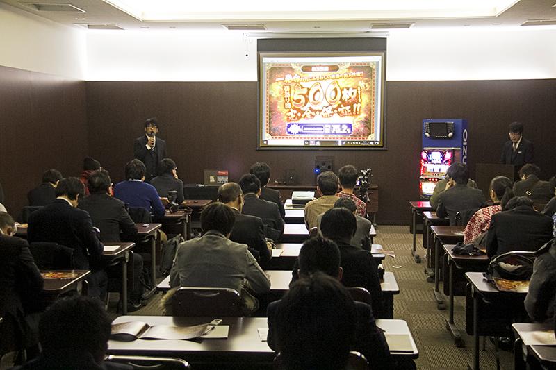 オーイズミは1月30日、都内でパチスロ新機種『ドリームクルーン500』の機種説明会と内覧会を実施した。