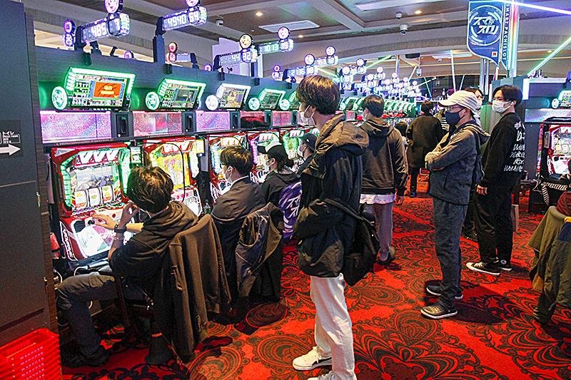 当日のアプリの入場抽選数は3600件以上で、朝一の入場者数は総設置台数の半数を超える約670人。入場後のパチスロコーナーは、新台のスマスロ3機種から順に埋まっていった。