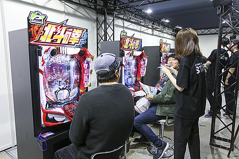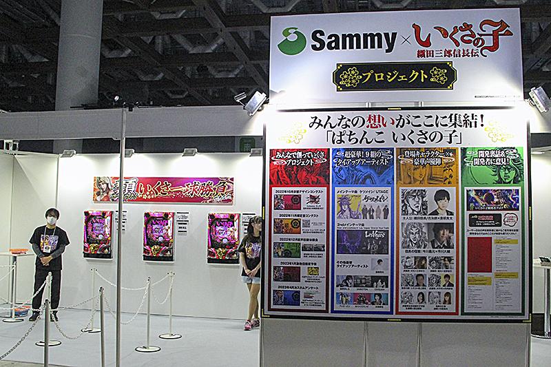 サミーは「北斗の拳」と遊技機の歴史をまとめた「北斗の拳×遊技機 20年の歩み」や開発中の遊技機にファンの声を反映させると話題になった「いくさの子プロジェクト」のブースなど、13ブースを出展した。
