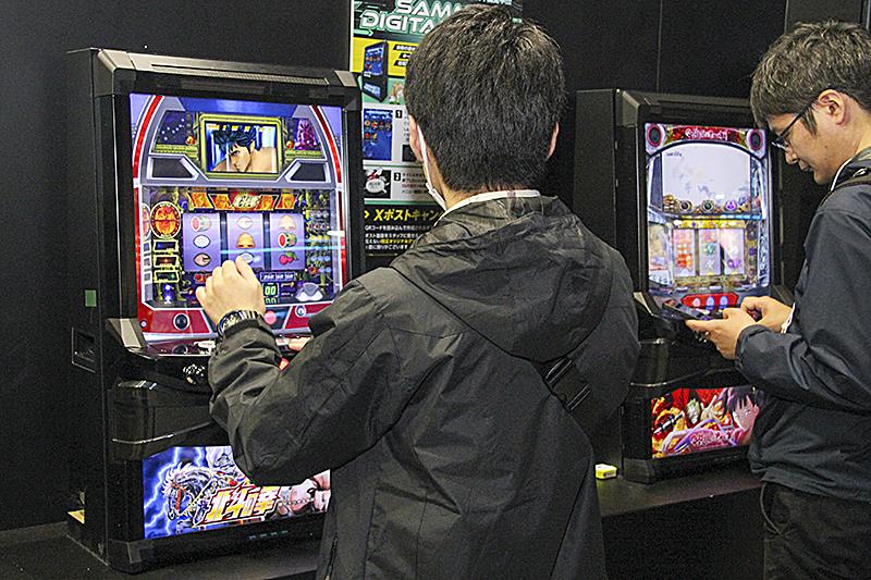 このほか2社の競技用遊技機を展示した「P-SPORTSブース」にも若年層の注目が集まった。ユニバーサルエンターテインメントは、5号機時代に人気を博したGODシリーズで制限時間内にPGGを引く、「SLOTマッピー」「ファミスタ回胴版!!」で難易度の高いビタ押しを成功させるといったゲーム性の機種を展示。サミーはメインステージで行われる「天運勝舞2024」「超ディスクアッパー選手権2024」決勝大会の当日予選を開催。決勝大会の残り一席を争う戦いが行われ、会場は熱気に包まれた。