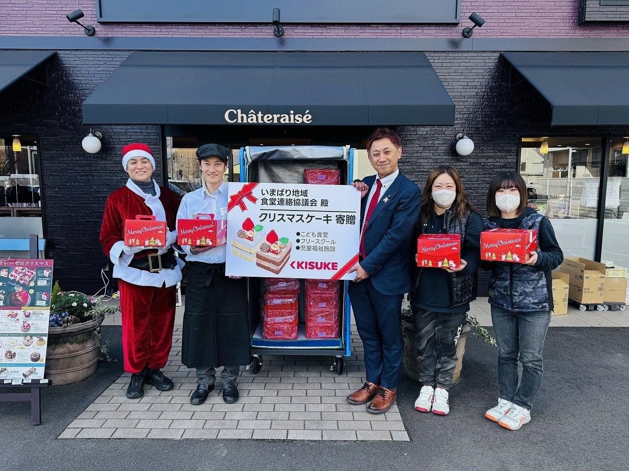 愛媛県内でホール8店舗を運営するキスケ(愛媛県松山市)のグループ会社である呑吐樋は12月24日、今治市内の子ども食堂を中心にフリースクールや児童福祉施設などにクリスマスホール・カットケーキを約300個分寄贈した。