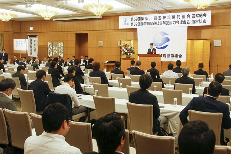 回胴式遊技機商業協同組合は5月23日、東京ドームホテルで通常総代会と組合大会を開催。総代会では任期満了に伴う役員改選が行われ、総代会後の理事会で大饗裕記理事長を再任した。