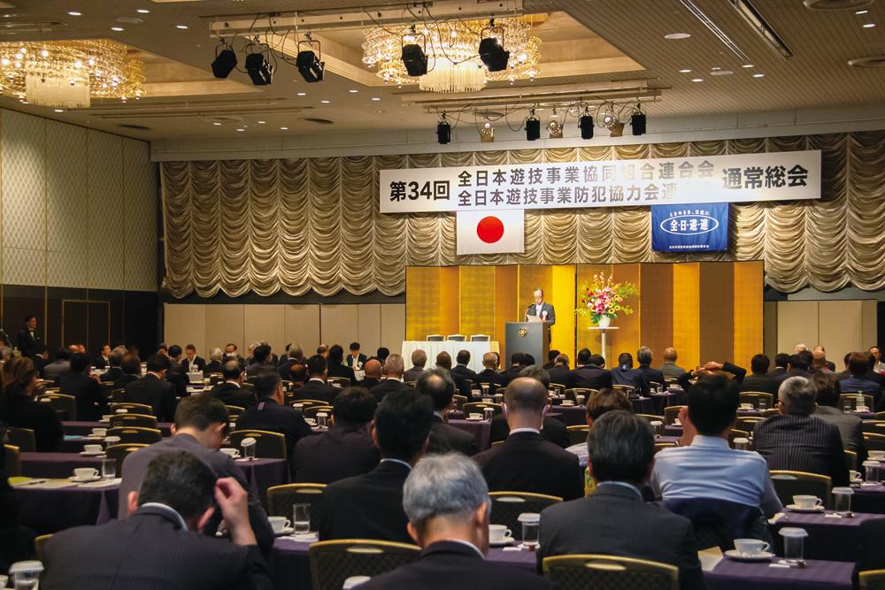 5期目に臨む大饗理事長は組合大会であいさつに立ち、「このような形で再任を受けたということは、しっかりと今までの活動を総括して、けじめをつけろということだろうと思う」と決意を新たにした。その上で、2018年にカジノを含む統合型リゾート(IR)をめぐる議論の中から、遊技業界がギャンブル等依存症への対策を求められて以降の業界の動きを振り返り、次のように述べた。