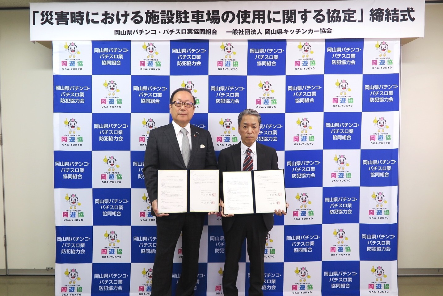 岡山県パチンコ・パチスロ業協同組合は12月23日、千原行喜理事長らが岡山県庁を訪問し、岡山県の伊原木隆太知事に岡山県福祉基金(桃太郎愛のともしび基金)として寄付金を贈呈した。