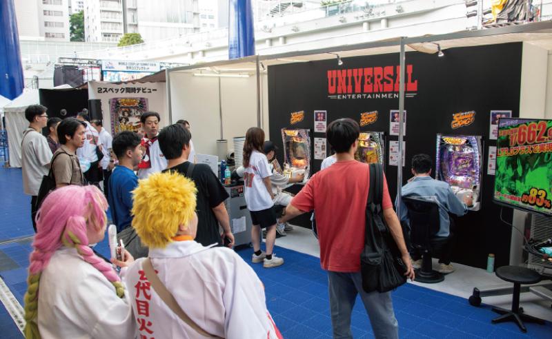 ユニバーサルエンターテインメントは近年、業界のイメージ向上と企業のブランド力アップに力を入れている。アニメミュージックイベント「ANIMAX MUSIX」や関東圏の花火大会などに積極的に協賛。今回は人気アニメ版権『シャーマンキング』とのタイアップ機種導入のタイミングで、若年層を中心に幅広い層に業界をアピールできる世界的イベントであることから、初めて協賛して企業ブースを出展した。