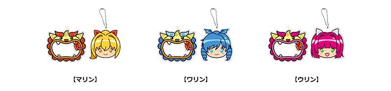 2枚重ねで着せ替え可能な、ゆるいシーサーとマリン、ワリン、ウリンが組み合わせられるアクキー。