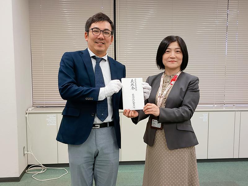 熊本県の下山薫保健福祉部長(右)とマルハン代表社員