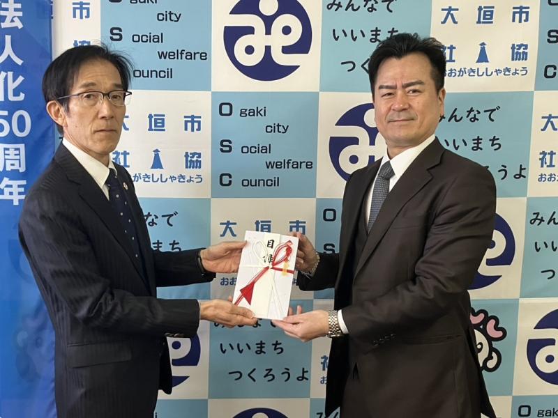 また15日にも、同じく歳末たすけあい運動で大垣市社会福祉協議会に10万円を寄託。内野克彦常務取締役から同協議会の早崎広俊常務理事に目録が手渡された。