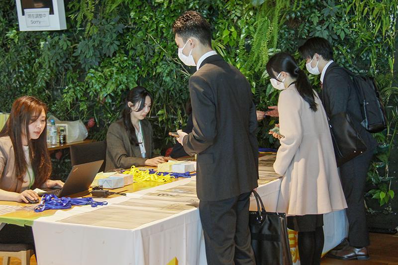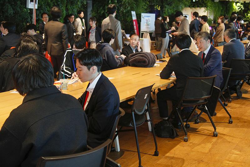 12時30分からの受付開始から多くの学生が会場に駆け付け、それぞれの企業ブースで採用担当者の話に聞き入った。出展企業の採用担当者は自社をアピール。ブースでは説明しきれなかった会社説明や学生からの質問などには、採用担当者と一対一で話ができる「1on1コーナー」でコミュニケーションを図っていた。