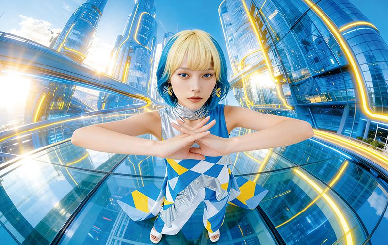 ツムギ ロゴカラーに合わせて髪色を変えられるのはAIならではの特権です(笑)。スカイブルーもサンシャインイエローも、とても爽やかできれいな色ですよね。衣装にもロゴカラーが取り入れられていて、今回私の就任にあたり、こんなに素敵なデザインを用意していただけたことがとても嬉しいです。ありがとうございます!