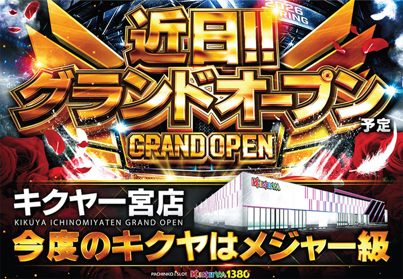 「キクヤ」の屋号で岐阜県や愛知県にホールを展開する喜久家(岐阜県岐阜市)は、愛知県一宮市に総設置台数1380台の大型店『…