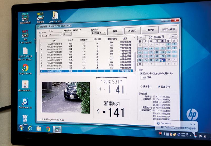 陣屋の駐車場には車番認証システムが設置され、登録された車が入ってくると顧客情報が発報される。