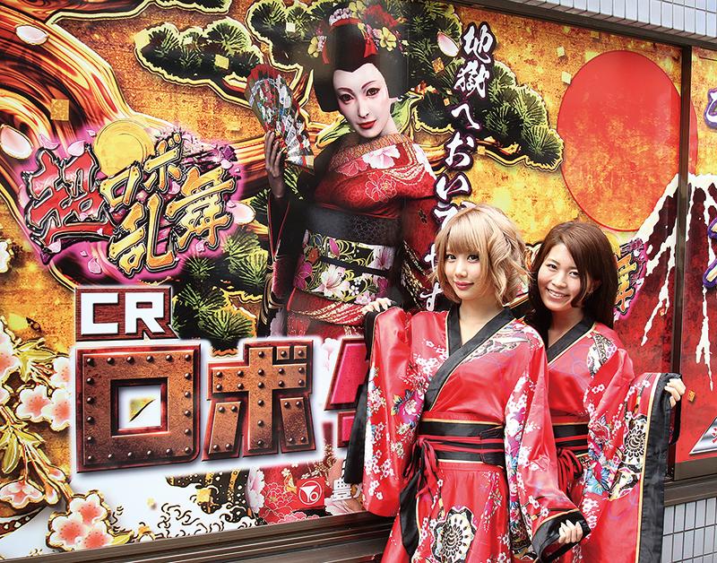 豊丸産業は4月10日、都内ショールームで新機種『CRロボゲイシャ』のプレス発表会を開催した。タイアップコンテンツは、井口昇監督による2009年公開の映画「ロボゲイシャ」。芸者とロボの組み合わせと並んで、豊丸産業の破天荒な演出がさまざまな笑いを誘うエンターテインメントパチンコだ。