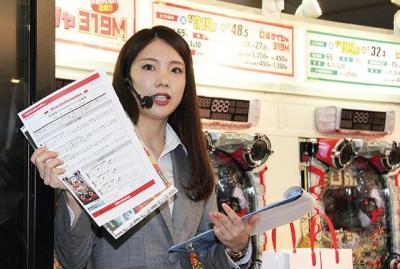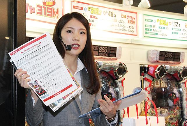 機種説明を行ったのは、営業本部の宇中あかりさん。その突出した世界観を、PV映像を用いて紹介した。スペックはミドル、ライトミドル、甘デジの3タイプをリリース。いずれも確変割合65%のループタイプで、小当たりRUSHを搭載している。