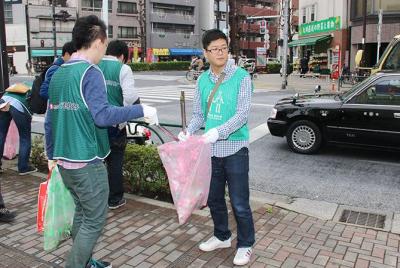 グリーンバードの横尾俊成代表がゴミ拾いの極意を披露し、スタッフの指導を受けた後、4班に分かれて隅田公園から浅草エリアを約1時間歩いてゴミを拾った。