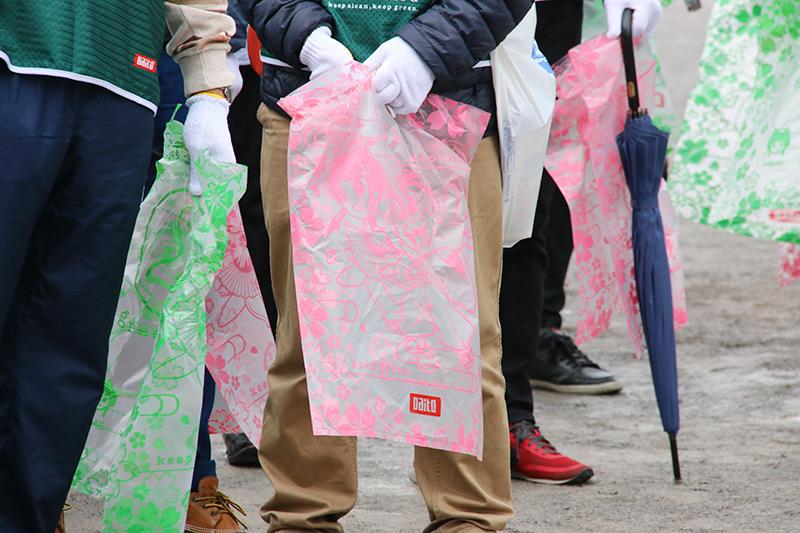 今回の吉宗大そうじに際して、大都技研では桜と吉宗のイラスト入りのゴミ袋(桜色と緑の2種類)を制作。このゴミ袋は今後、グリーンバードに提供し日本と世界各地で行われるゴミ拾いでも使われるという。桜のゴミ袋のコンセプトは「ゴミを積み上げると街が桜で満開となる」だという。