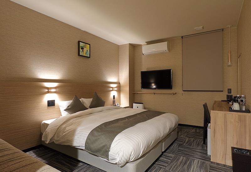 ホテルは6階建てで、部屋数は1 0 2室。部屋はモノトーンでクールな内装と、ナチュラルトーンの落ち着いた内装の2種。シングル、クィーン、ダブル、クアッド、ツイン、ユニバーサルと選択肢の多い仕様となっている。料金は6000円から8000円。