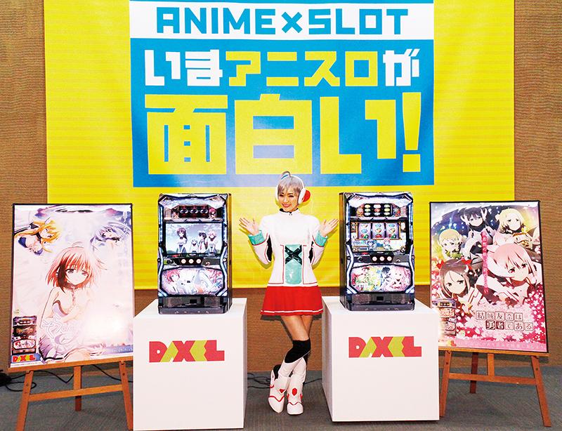 アニスロはDAXELが、アニメコンテンツを題材にリリースしているパチスロの総称。今回は第6弾、第7弾の機種になる。栢森秀行会長は、「今までの5機種はいずれも一定の評価をいただいた。5.5号機の稼働が振るわない中、アニスロはホール様に貢献できていると思う」と市場での位置づけをアピールした。