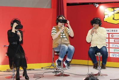 この日は3大重大発表としてひぐらしの狂気な世界観を体感できる「VRひぐらしのなく頃に~現(うつつ)~」の製作も発表。「ひぐらしのなく頃に」の世界観をVRによる恐怖体験や作品がもつ空気感、緊張感、狂気などを実体験できるVRをゲストの3人が体感した。
