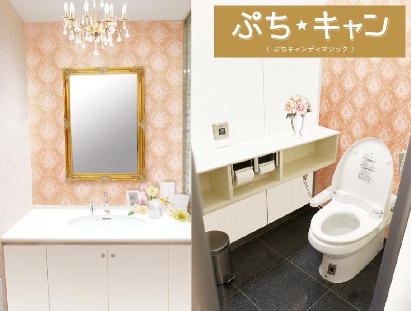 トイレ/パウダールームは5つのデザインパターン(プリンセス、ナチュラル、ゴージャス、リゾート、ゴシック)から選択可能。自店に最もフィットするデザインを新台1台以下の価格でコーディネートできるのが魅力だ。