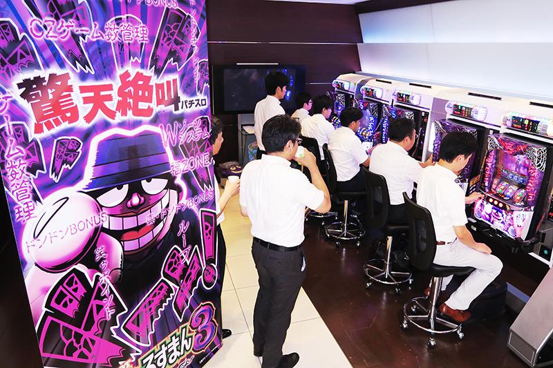三洋は7月12日、東京支店ショールームでパチスロ新機種『笑ウせぇるすまん3~笑撃のドーン~』の内覧会を開催した。同機種はゲーム数解除ゾーンと自力解除ゾーンが100Gごとに交互に訪れる「期待感の継続」が特長。
