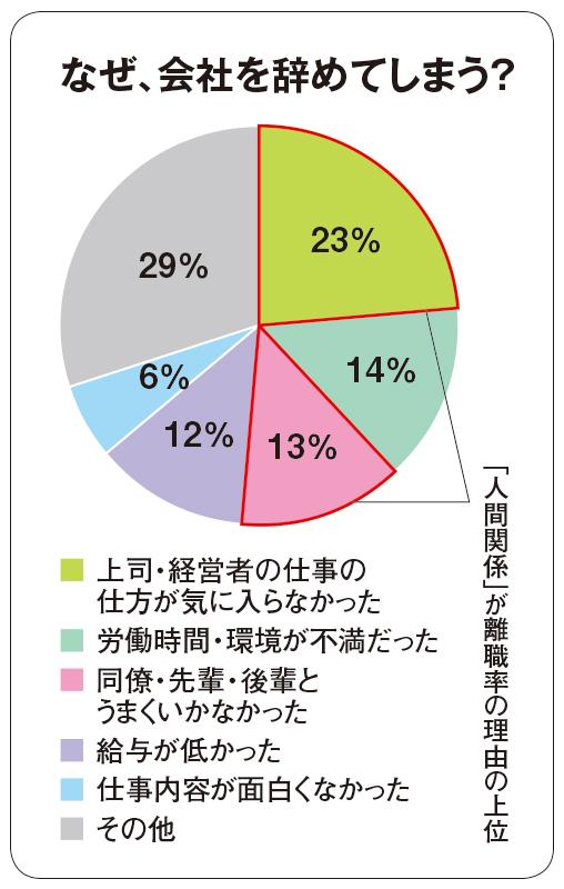 中でも大きな効果は離職率の低下だ。一般的に3年以内の離職率は大卒で3割、高卒で5割などと言われているが、その理由の4割近くが「人間関係」が占め、「給与が低い」、「仕事のやりがいがない」といった理由を大きく上回っている。