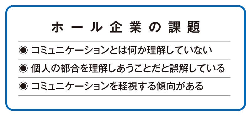 私はホール企業に勤め、その後ホール企業の人材育成・業績向上の支援をしてきました。その20年間の経験から「社内コミュニケーションに対して『誤解』が増えている」と感じます。