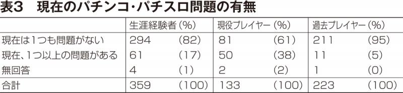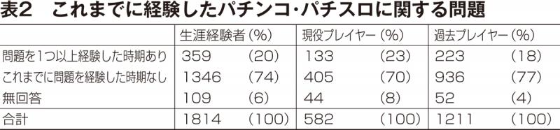 その結果、何かしら問題を抱えた人の割合は「現役プレイヤー」「過去プレイヤー」ともに2割前後(表2)。抱えた問題として最も多かったのは、「行動の自己制御困難」、次いで「経済的困難」だった。