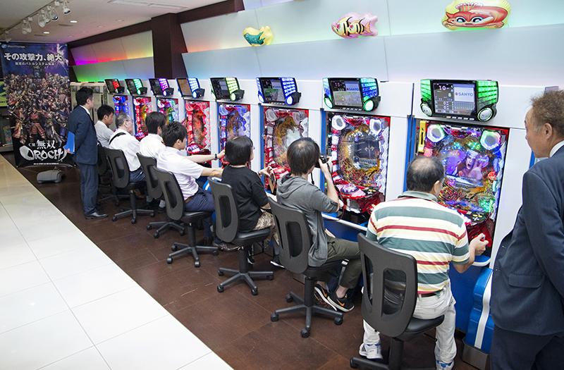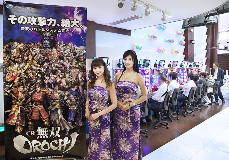 三洋は9月12日から全国の各支社・営業所で、サンスリー製新機種『CR無双OROCHI』の内覧会を開始した。東京支社ショールームでは9月15日に開催。試打したホール関係者は、「確変と時短の流れがシームレスで、数字以上に確変継続の期待が持てる」と好感触を示していた。