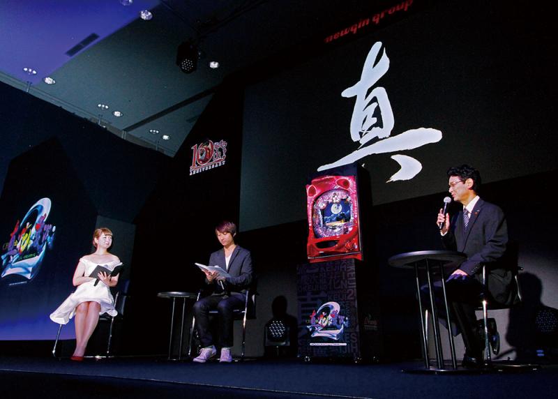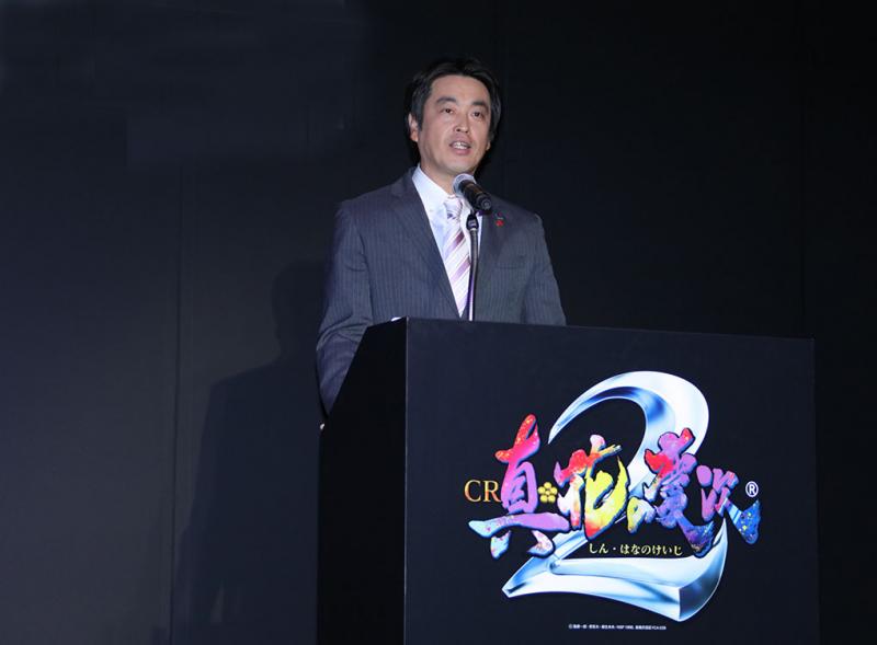 冒頭の挨拶でニューギン販売の金海晃和常務取締役は、「花の慶次シリーズは、今年で10周年。ひとえにファンやホールが支えてくれたおかげだが、その歴史に恥じないシリーズ最高傑作」と完成度の高さをアピールした。