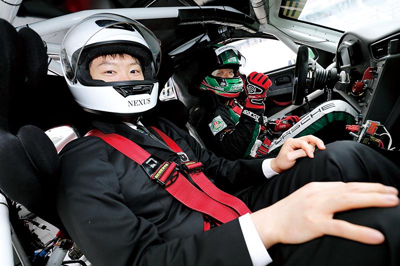 内定証書授与後は、サーキットコースでレーシングカーの同乗走行体験を実施。ポルシェやフェラーリなどのレーシングカーやスーパーカーの助手席に同乗した内定者は、プロドライバーの運転で時速270キロを超えるスピードを体験した。