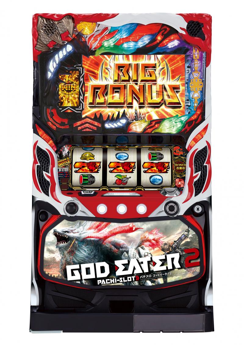 スペックは、3種類のボーナスと純増1.4枚/GのARTを搭載したA+ART機。「バーストビッグボーナス」では390枚を獲得できる。ART「討伐任務」は1セット40Gから100G。アラガミ討伐に成功するとストーリーが進行するほか、報酬ポイントを獲得。20ポイント貯まるごとに討伐時の戦況を有利に運べるトリガーをストックできる。
