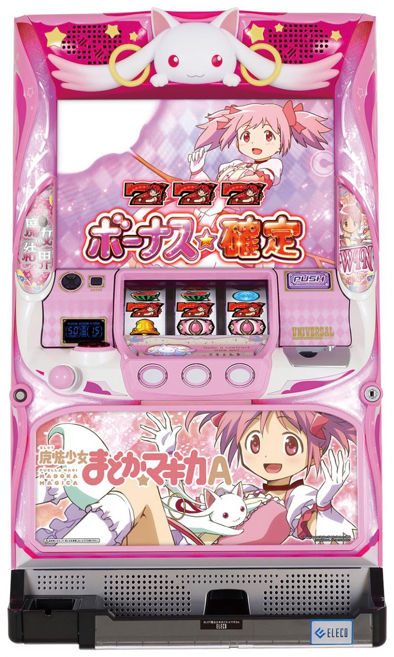 ユニバーサルエンターテインメントは10月18日、都内で『SLOT魔法少女まどか☆マギカA』(エレコ)のプレス発表会を開催した。同シリーズは、ARTタイプの初代とA+ARTタイプ2作目が長期間稼働を維持する人気コンテンツ。第3弾はノーマルタイプで登場した。