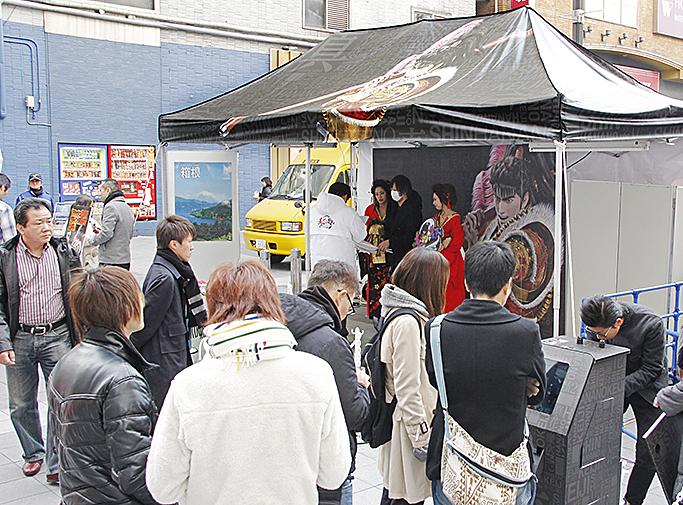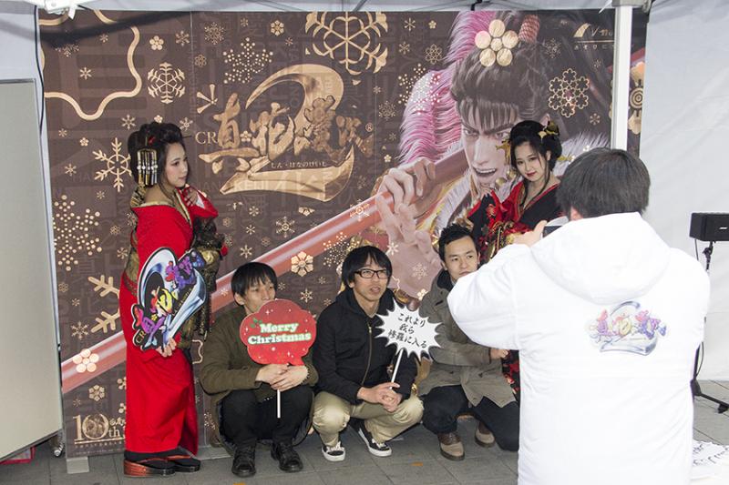 当日はクリスマスムードの中、熱心な慶次ファンやカップル、家族連れ、訪日観光客などが来場。記念撮影をする人々で長蛇の列ができた。撮影した写真は、その場でオリジナルフォトカードに印刷されプレゼント。忘れられないクリスマスプレゼントとなった。