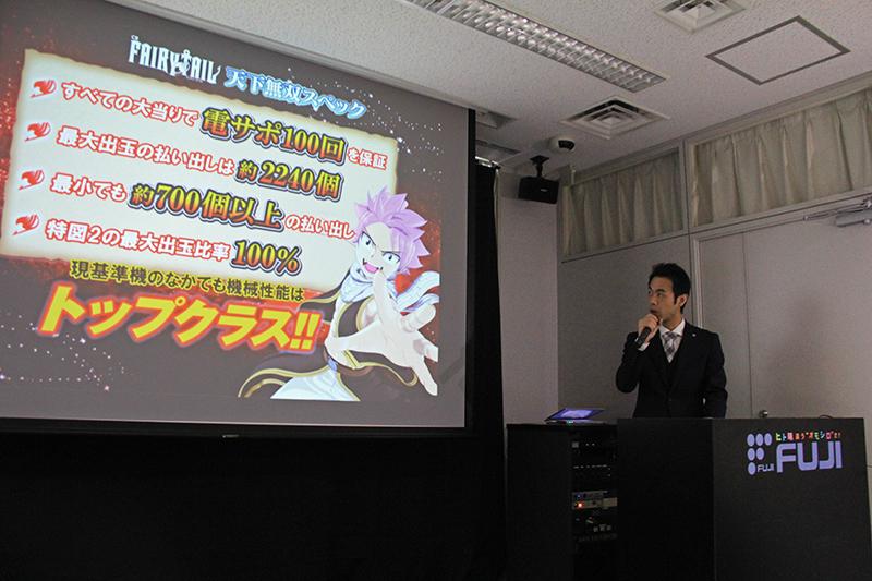 藤商事は1月19日、東京支店ショールームで新機種『CR FAIRY TAIL』のプレス発表会を開催した。