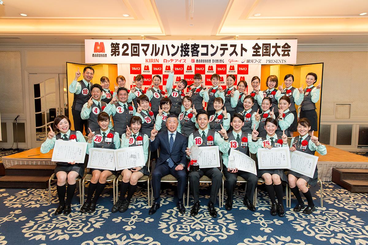 マルハンは2月6日と7日、「第2回マルハン接客コンテスト全国大会」を開催した。コンテストには全国のマルハンスタッフとして働く社員とCSキャスト計1万2000人が参加。各地区の予選で選ばれたファイナリスト30人が最終審査会で接客技術を披露し、最優秀賞のグランプリには鹿浜店(東京都足立区)の川畑誠也さんが選ばれた。