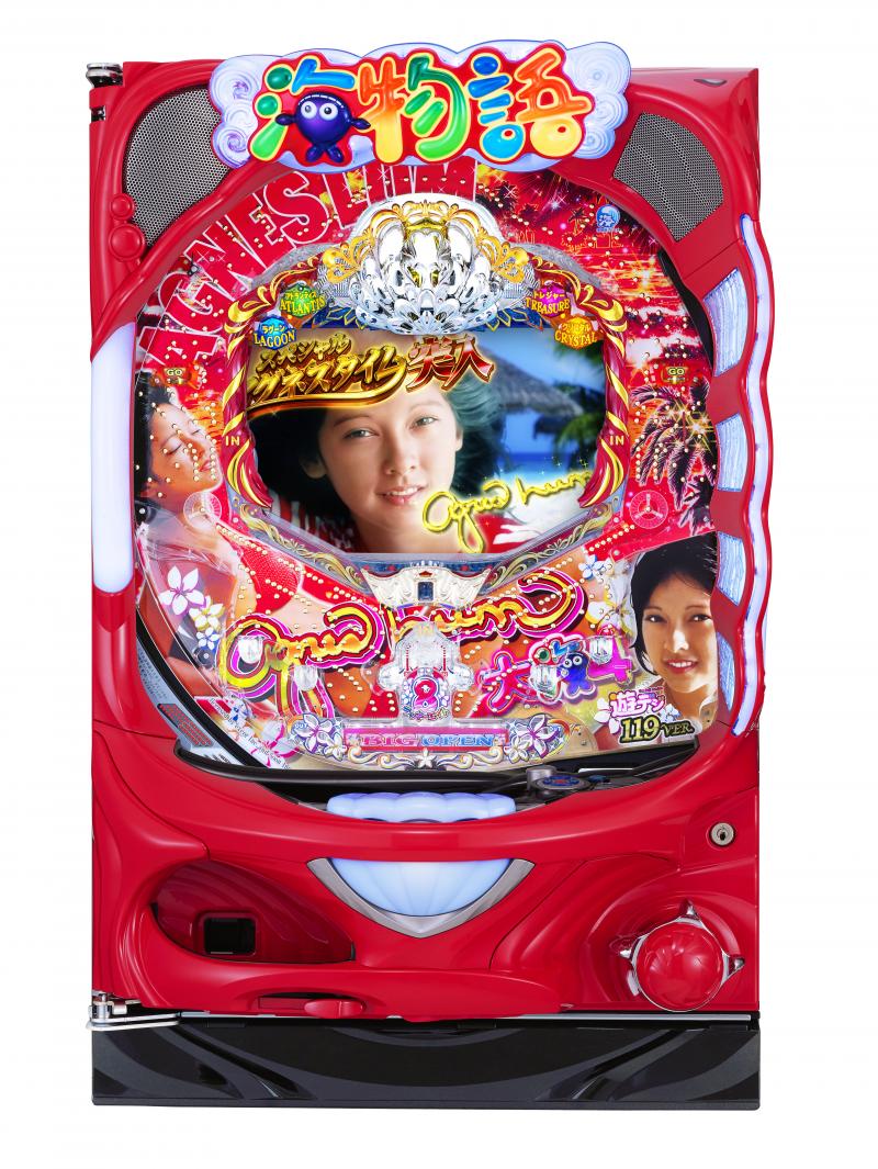 三洋は2月20日、都内ショールームで新機種『CR大海物語4 With アグネス・ラム 遊デジ119ver.』の内覧会を開催した。10周年を迎えたアグネスシリーズが、ライトタイプの新しいカテゴリー「遊デジ」スペックで登場。大当たり確率は約1/119。