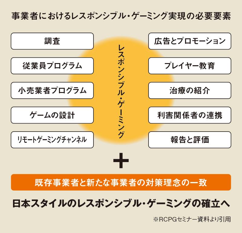 「これまでは、対策の焦点が、起きてきた問題や問題を持った人、または今後起きてくる問題、いわゆるプロブレム・ギャンブリングだったが、いまはレスポンシブル・ゲーミング、いわゆる責任あるゲーミングという対策に世界が大きくシフトしている。日本がいまやっている議論は残念ながらまだその手前。IRの議論が投げかけている黒船の議論においては、実は世界はこうして動いているが、さて日本は近代化しますかということが問われている」