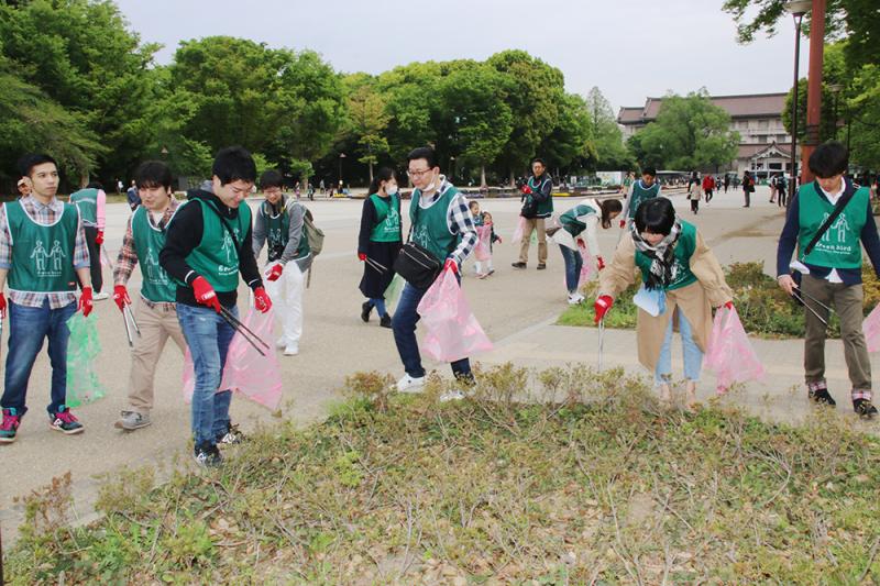 参加者は5組に分かれて上野東照宮などの公園内や不忍池など公園の周辺のゴミを約1時間半にわたって拾って歩き、計1900リットルのゴミが集まった。
