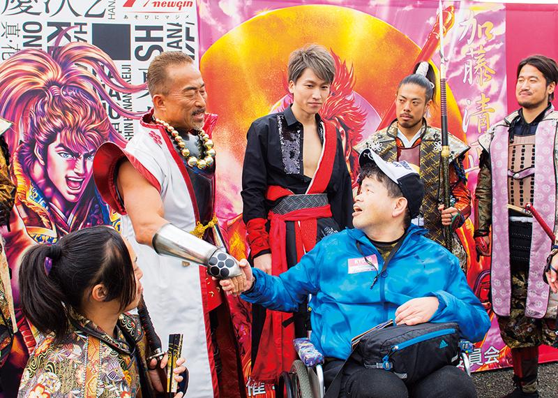 スポンサーブースエリアではフォトスポットを展開。「花の慶次」の原作者である原哲夫先生が描いた前田慶次と加藤清正のイラストを展示した。ライブ終了後、角田さんと大西さんがブースを訪れ、205のグループと記念撮影を行い交流。ほかにも会場内を練り歩き、被災者にパワーを届けた。