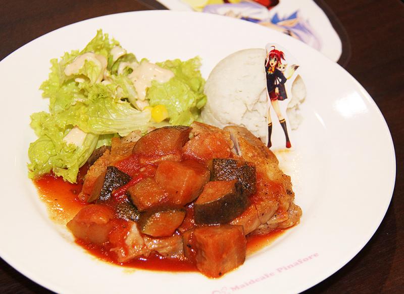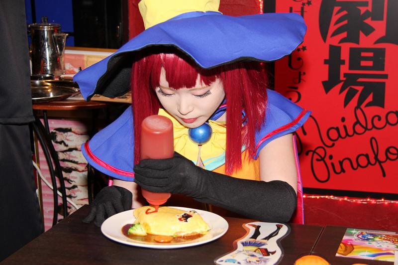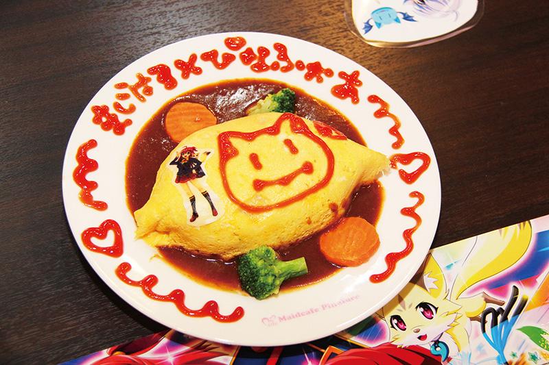 期間中の限定メニューのイチ押しは、マジハロオムライス(1500円・税別。以下同)。ふんわり焼き上げた卵で包み、デミグラスソースを添えたオムライスにメイドさんがケチャップでお絵描きをしてくれる。