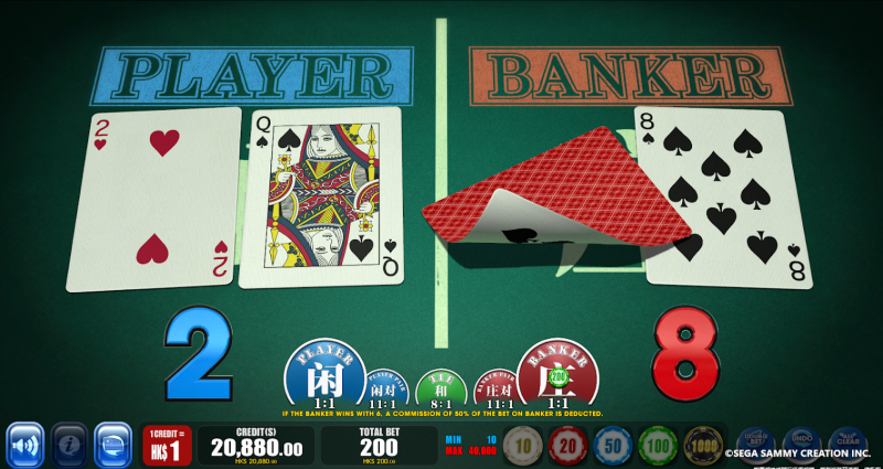 同製品は、バンカー/プレイヤーのどちらが勝つかを予想する人気カードゲーム「バカラ」をモチーフにした、スタンドアローン型のETG(エレクトロニック・テーブル・ゲーム)。32インチの大きさを誇るアッパーモニターには、予想のカギを握る罫線(勝敗の履歴データ)が常時表示されている。通常のバカラテーブルではなかなか挑戦できない、バカラの醍醐味である「絞り」も毎ゲーム楽しめる。