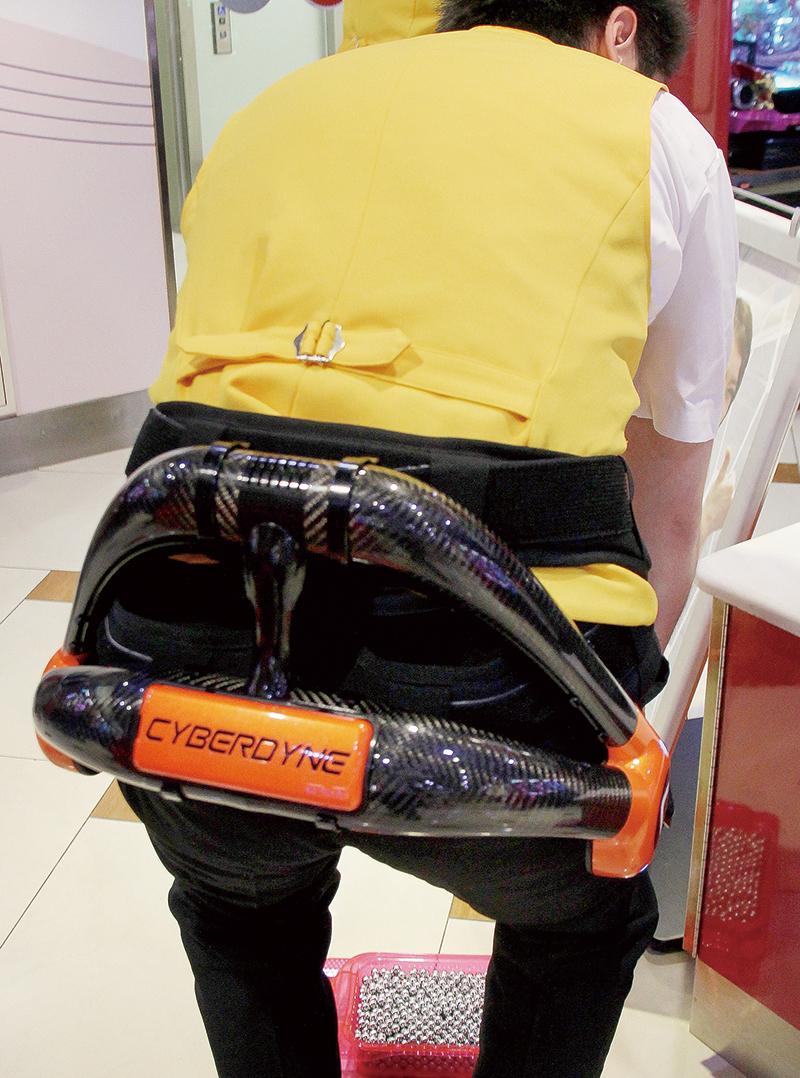 このロボットスーツの名称は「HAL®腰タイプ作業支援用」。開発したCYBERDYNE社は、大学の研究成果物で社会貢献するために設立された企業。腰タイプのHAL®は労働現場での作業支援として使われることが増え、現在は航空会社や工場など全国で約1200体が活用されている。