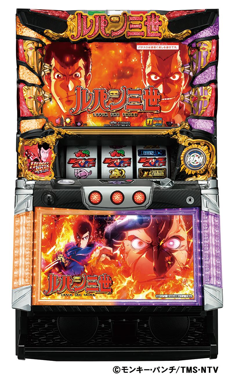 三つ目が7図柄揃いの不二子ゾーン。通常時は最大104枚(ヒーローズロード時は最大119枚)を獲得した後、ヒーローズロードに突入する。ボーナス中も毎ゲーム、全リールに「BURST図柄」を狙う。ホール導入は7月30日からを予定している。