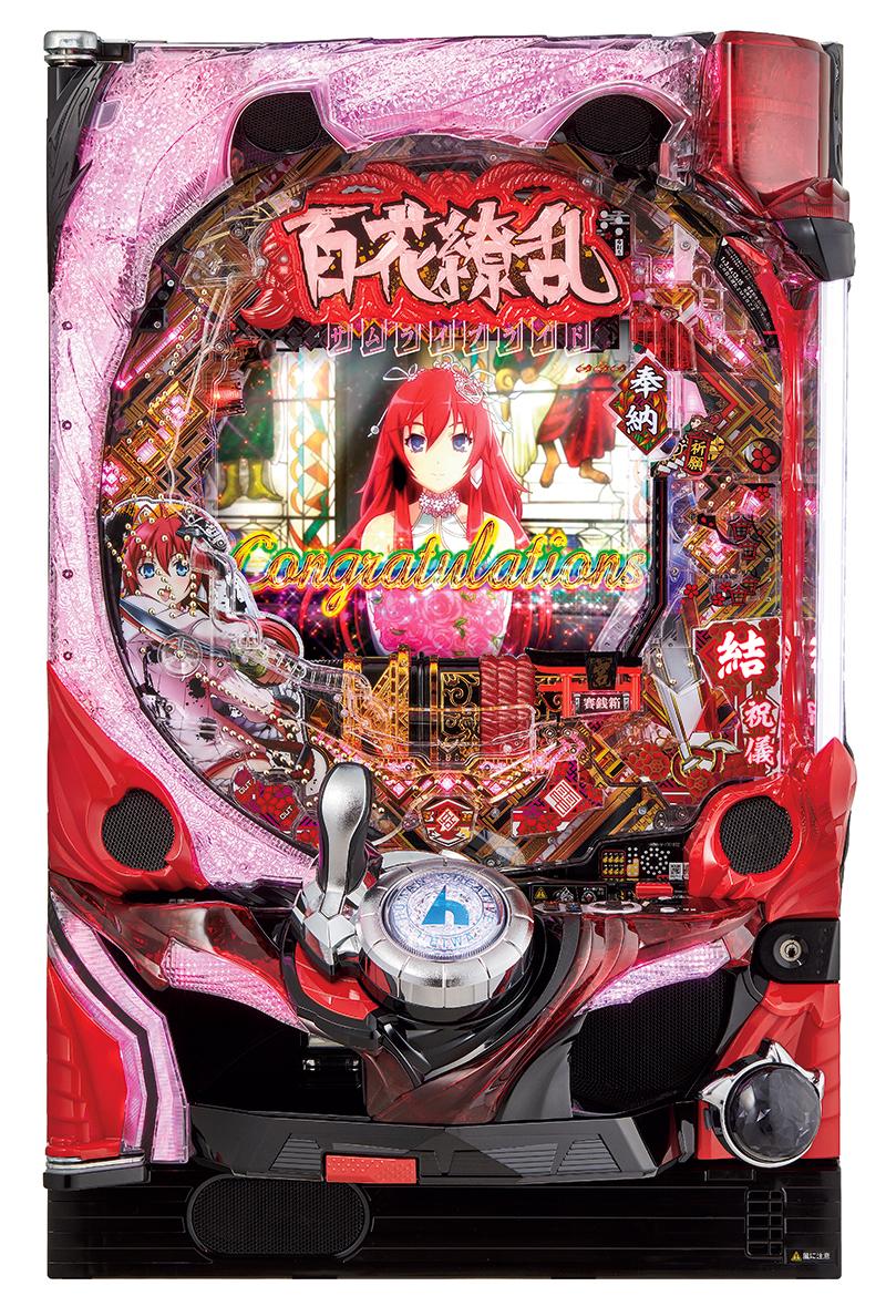 これは確変の最高状態「百花繚乱エターナル」中に発動。大当たり出玉数に応じて加算される親密度メーター「ブライダルポイント(BP)」が貯まるほど、ラブラブ感の高い演出やイベントが発生する。BPが各キャラの最大規定値に到達すれば結婚となり、至福の時を味わえる。選べる花嫁候補は初期段階で7人。