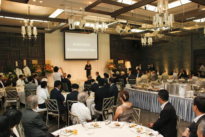 宮崎県延岡市でパチンコホールを運営する新世紀は新規事業として福祉事業部を開設。7月26日、宮崎県のエンシティホテル延岡で南九州地区の福祉関係者や、延岡市の政財界関係者ら130人を招待して福祉事業部発足記念内覧会を開催した。
