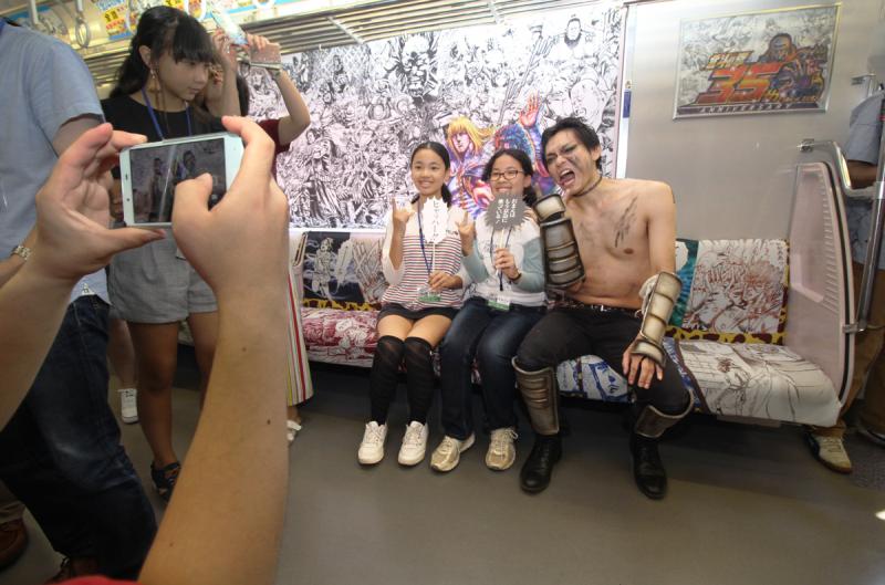ヒャッハートレインは、事前応募した家族連れなど約100人とスタッフを乗せて京急品川駅を朝9時過ぎに出発。北斗の拳に登場するザコキャラに扮した劇団員が、「ヒャッハー」と雄叫びを上げながら車内を盛り上げた。