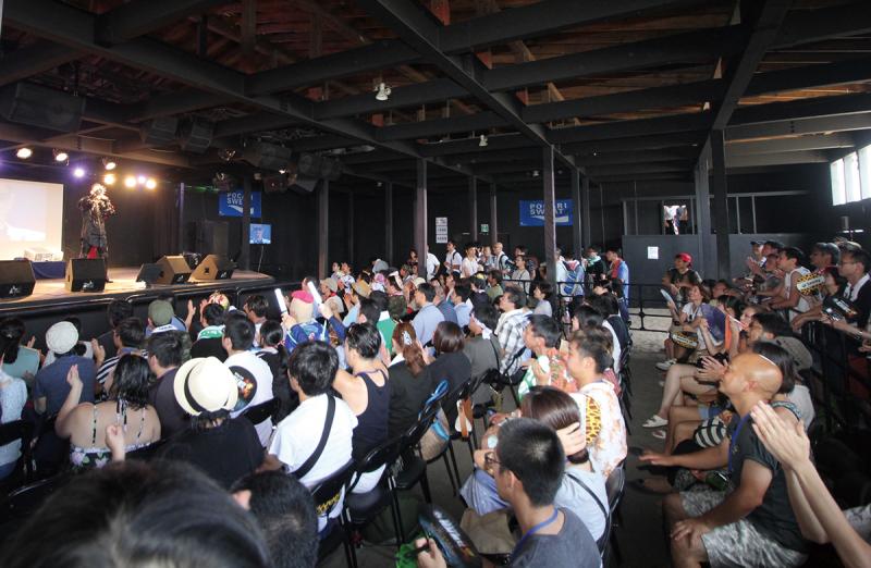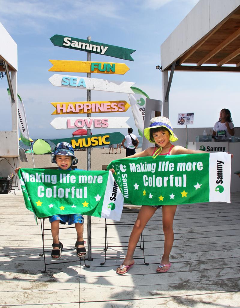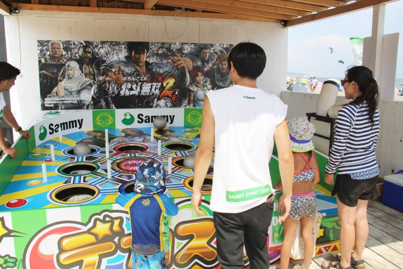 スペシャルミニライブ&トークイベントの会場は、三浦海岸の砂浜に建てられたライブハウス「OTODAMA SEA STUDIO」。CRYSTALKINGがオープニングアクトを務め、アニメ「北斗の拳」の主題歌でサミーの「北斗の拳」シリーズ搭載曲、「愛を取り戻せ」を熱唱した。