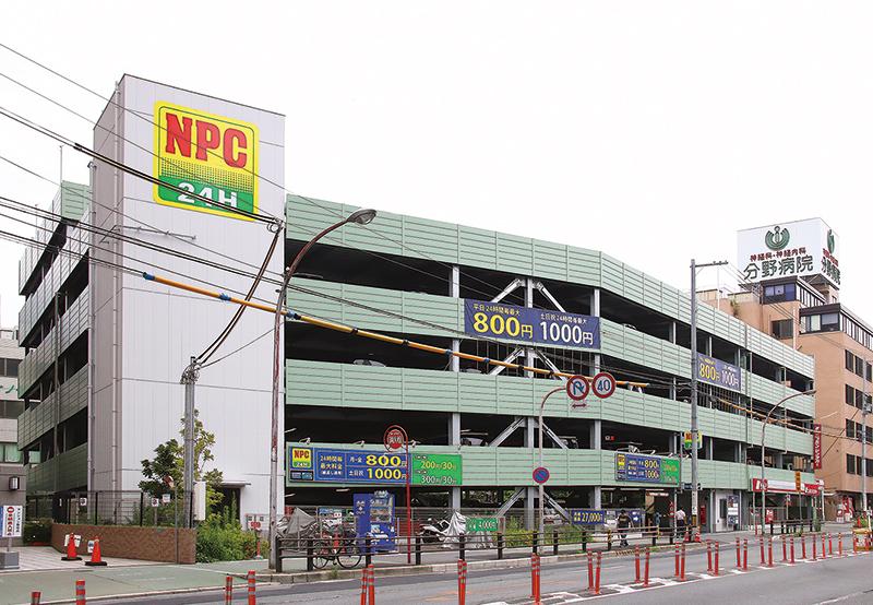 同じ大阪市にあるJR京橋駅からほど近い『NPC24H京橋パーキング』は、国道1号線に面した交通量の多い立地にある。こちらは5層6段の自走式立体駐車場。時間貸し、月極のほか、1階にレンタカー店がありここでも収益を挙げられるビジネスモデルだ。